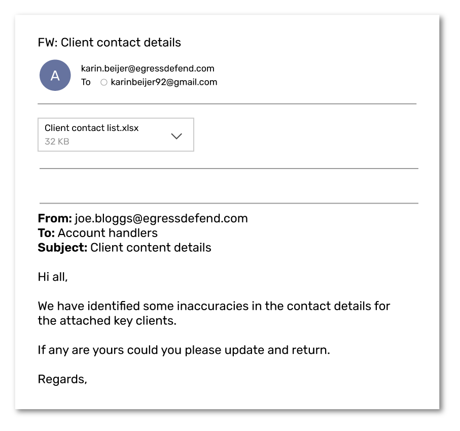 Based on Egress platform data, on average organizations of your size in {insert selected industry} experience these outbound threats:
